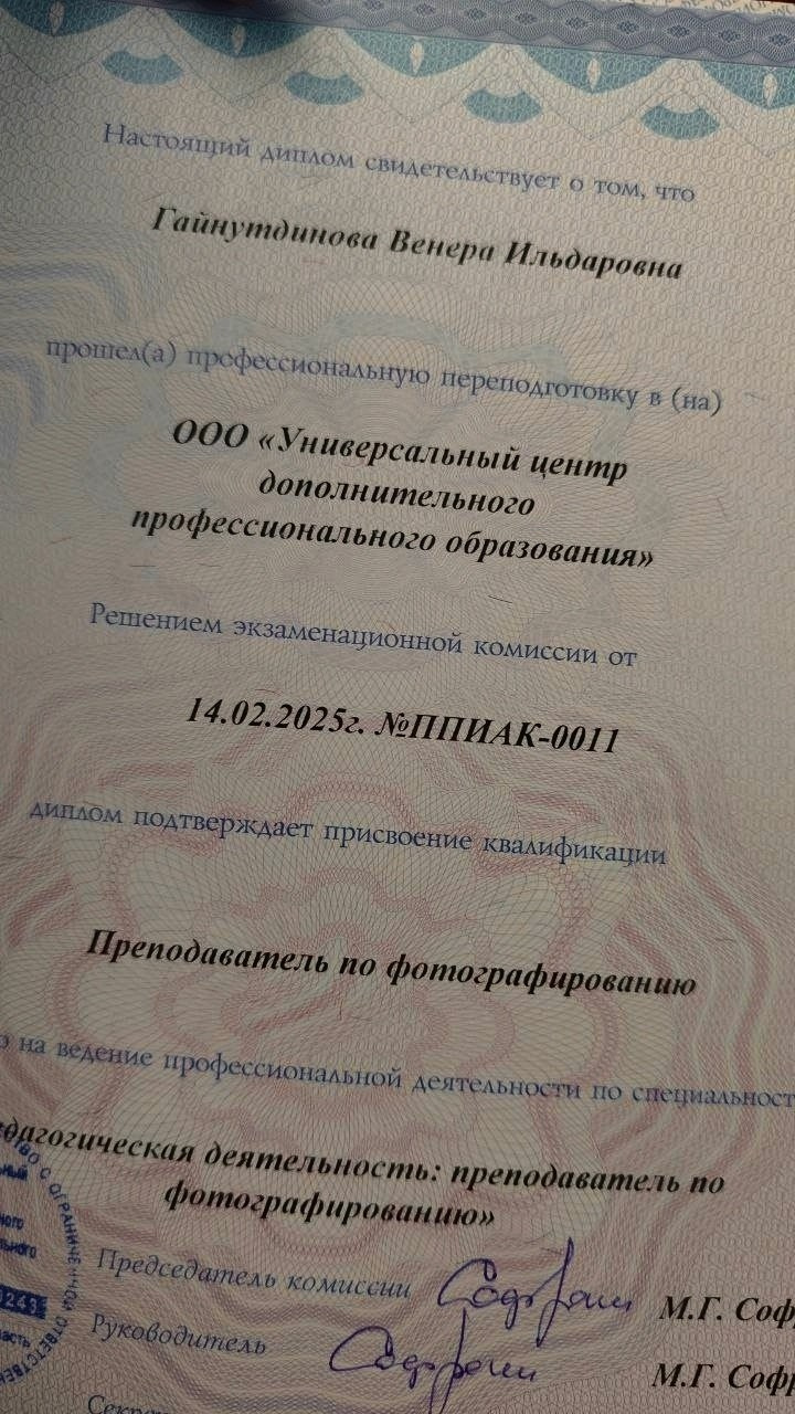 Привет, меня зовут Венера Гайн. Я прошла большой путь в фотографии, длиною в 8 лет. Прошла много обучений по фотографии и маркетингу. Вложила в свои обучения 823 т. р. Обо мне печатали в газете, мои работы печатали в зарубежных журналах, я вошла в топ 32%, топ 16%, топ 11% и крайнее -топ 5% лучших фотографов мира